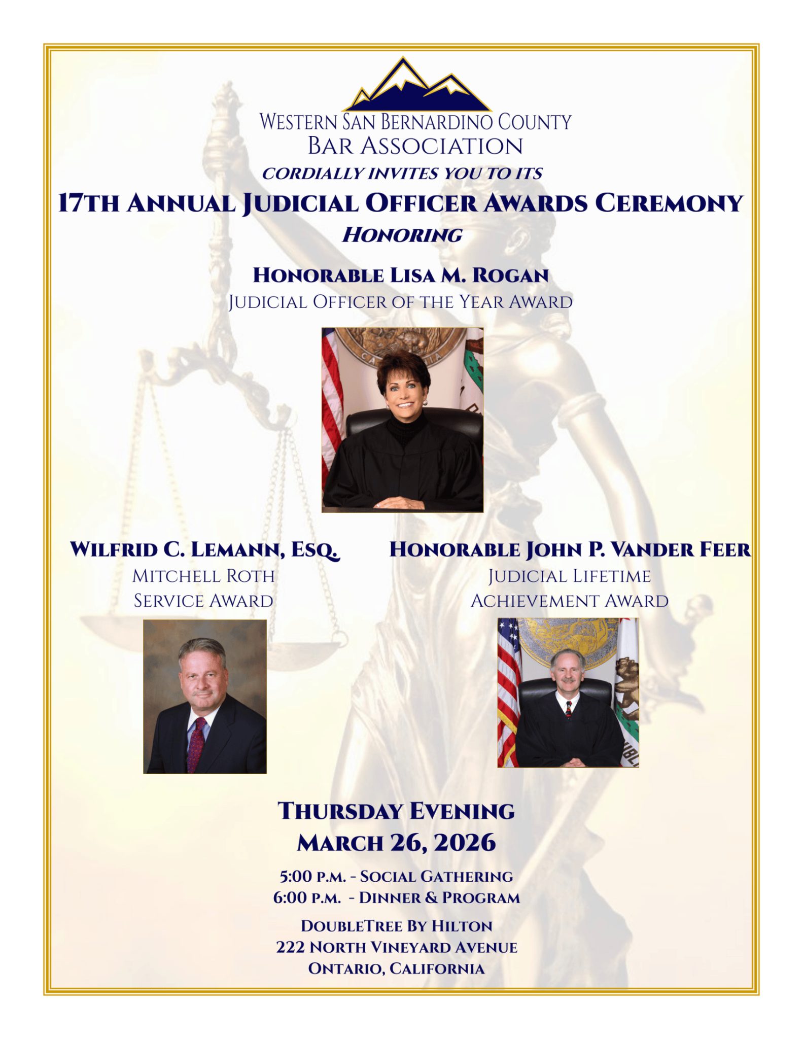 It is our pleasure to invite you to our 17th Annual Judicial Officer Awards Ceremony honoring…