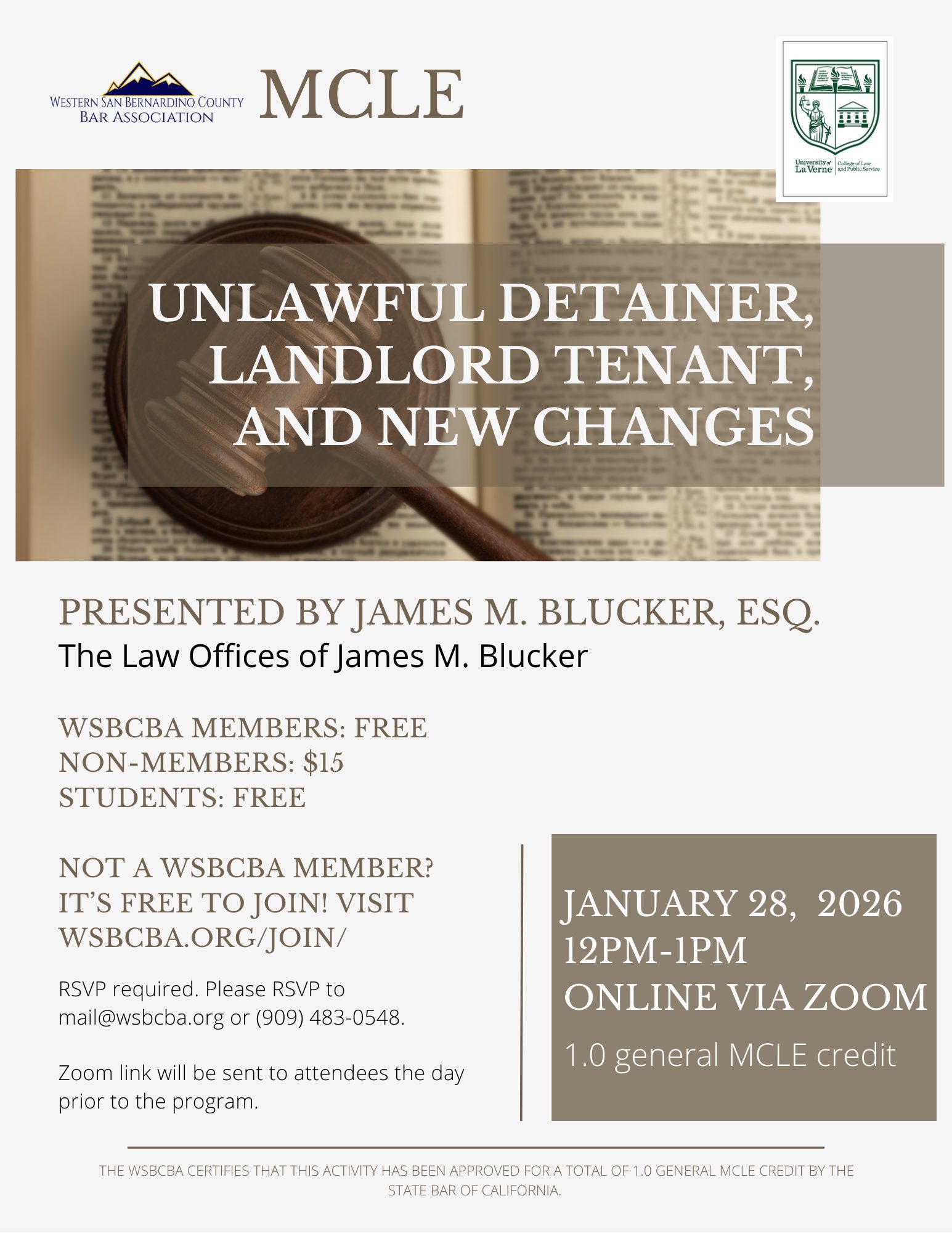 MCLE: Unlawful Detainer, Landlord Tenant and New Changes